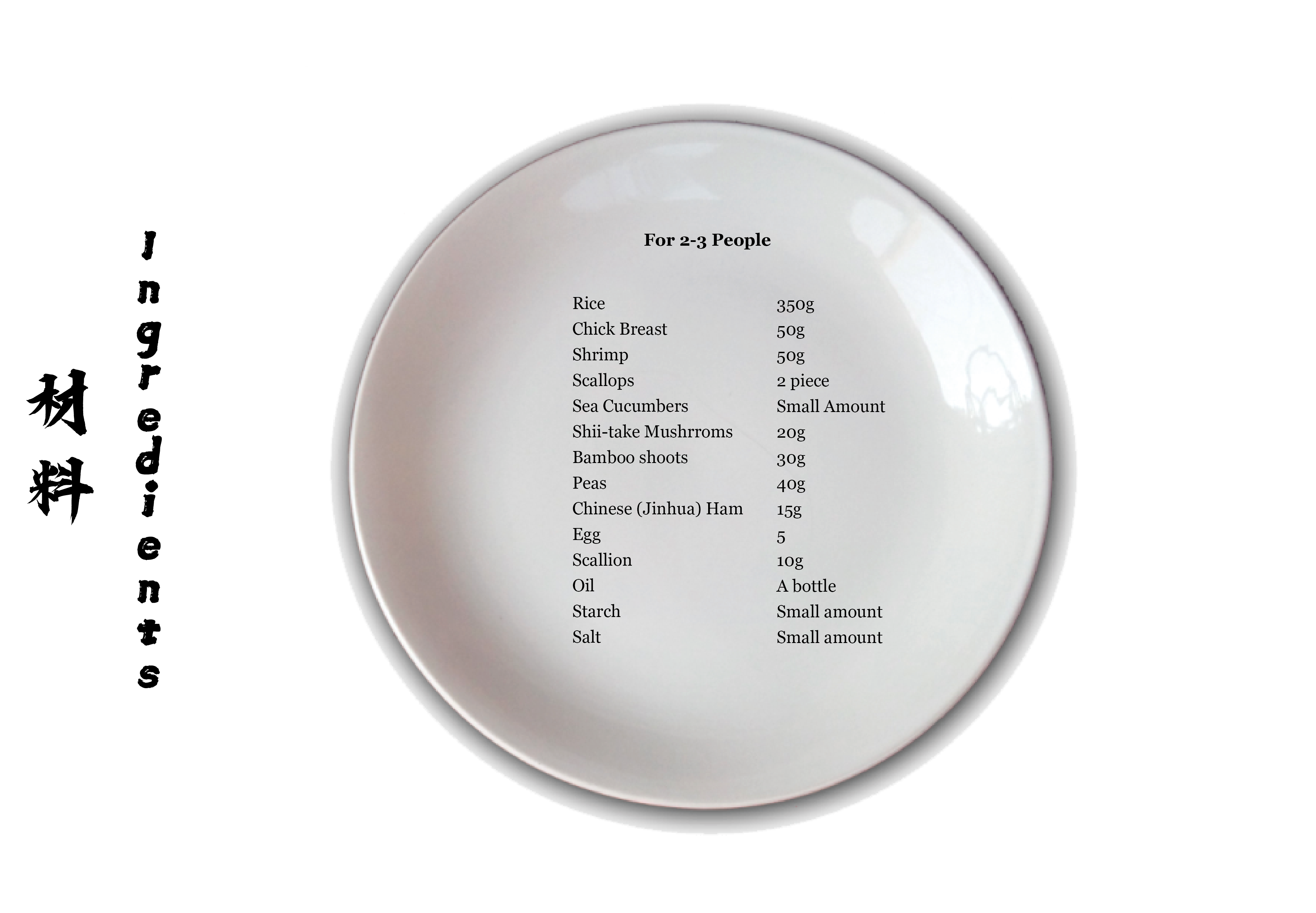 Cut mushroom, hams, chicken breasts, bamboo shoots, and sea cucumbers into dices