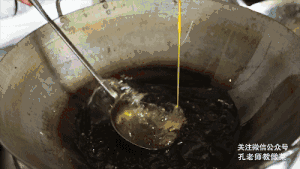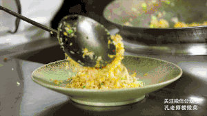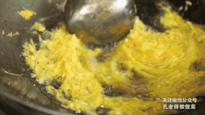 13. 勺子一定要不停地搅拌,直至蛋丝炸至金黄。