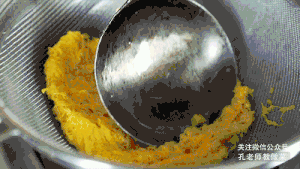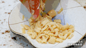 14. 炸好的蛋丝滤油,用勺子轻轻按压,压出多余的油,使蛋丝蓬松干爽。