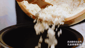 3. 米中滴入几滴稻米油。(煮饭时加入几滴金龙鱼稻米油,米饭油润有光泽,颗粒感增强,粒粒分明不粘连)